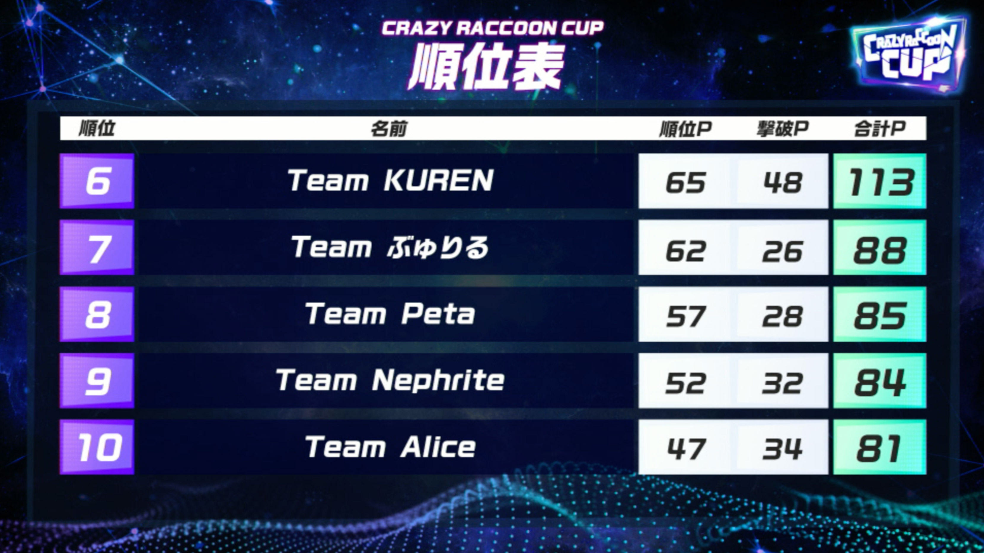 試合はTeam KURENがRound3にてビクロイを獲得するなど各チーム奮闘。