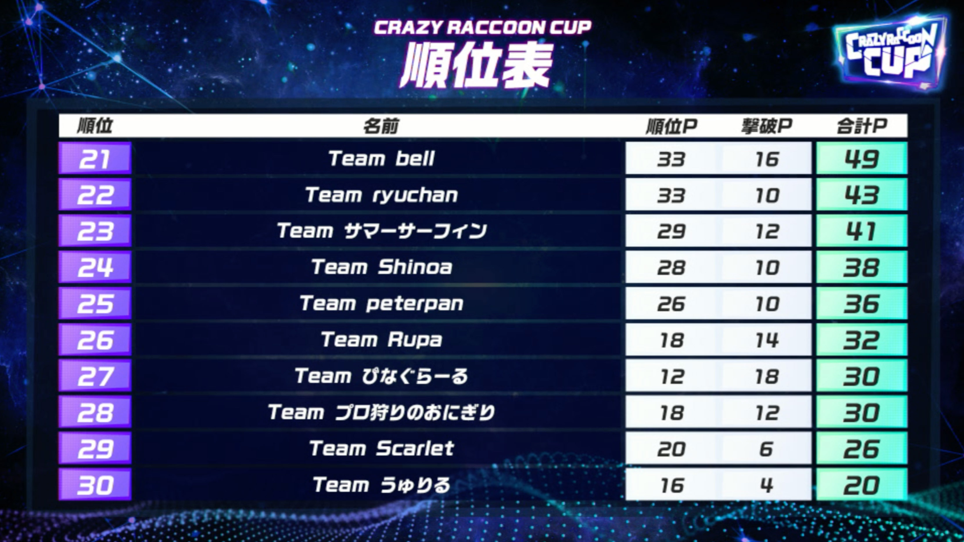 27位 Team ぴなぐらーる