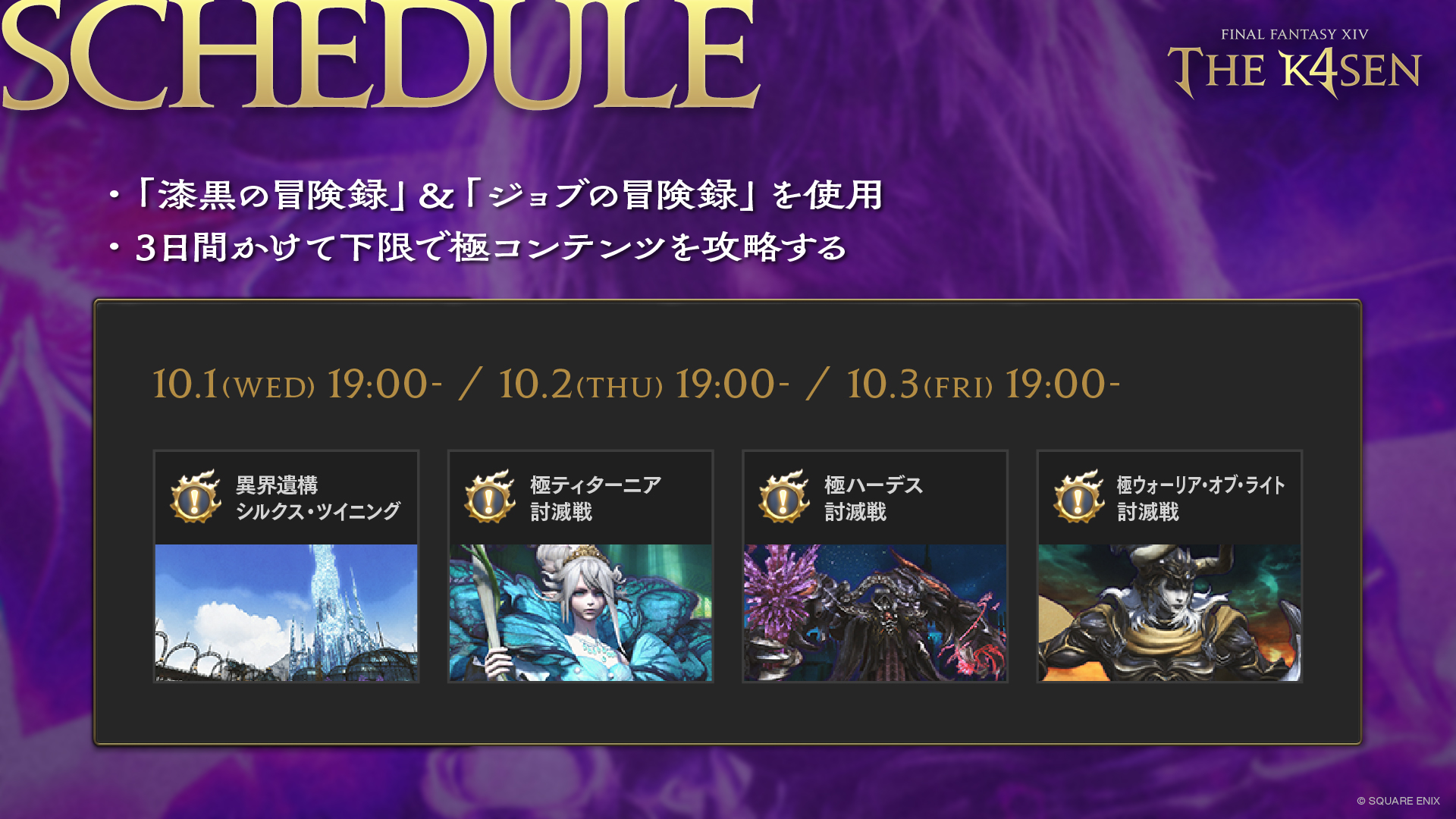 CREATOR部門のk4senが、10月1日(水)から10月3日(金)に『ファイナルファンタジーXIV The k4sen』を開催し、同部門のClutch_Fi, SHAKAが出演いたします。