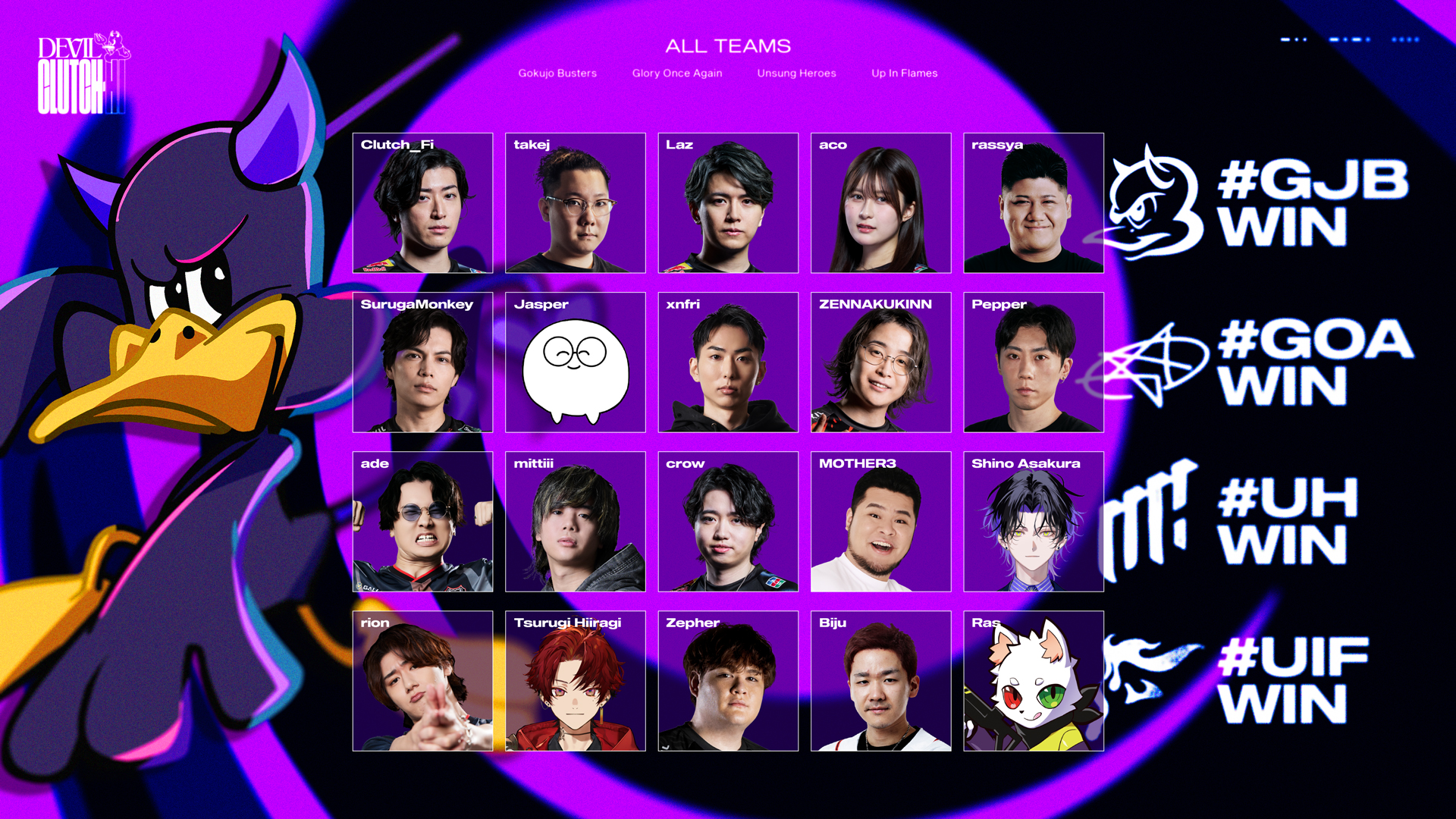 『Devil Clutch杯 #4 Supported by Riot Games ONE』はClutch_Fiが主催する、「VALORANTの競技シーンを離れた後も、元プロ選手たちが輝ける場所を作りたい」という願いから企画された大会です。