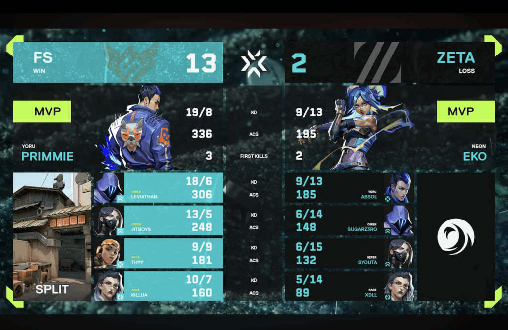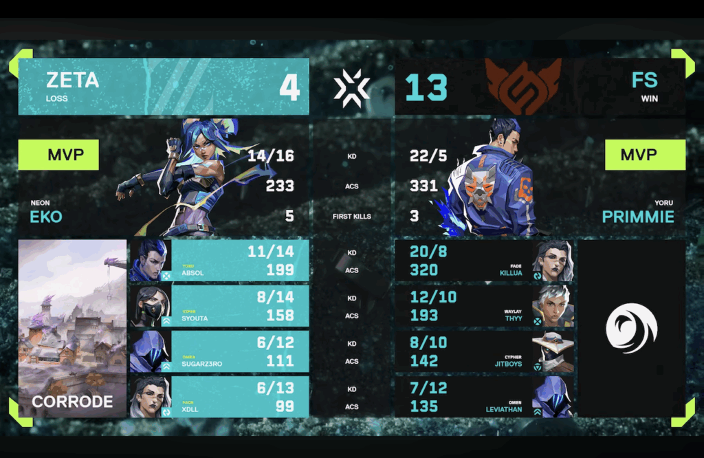 2月17日(木)に行われた初戦ではFULL SENSEと対戦いたしました。1 Map目のCORRODEでは攻めの糸口を探るも、統率されたプレイに阻まれ4-13で敗北し、続く2 Map目のSPLITでは立て直しを図りましたが、勢いに乗る相手の猛攻を止めきれず2-13で敗れました。