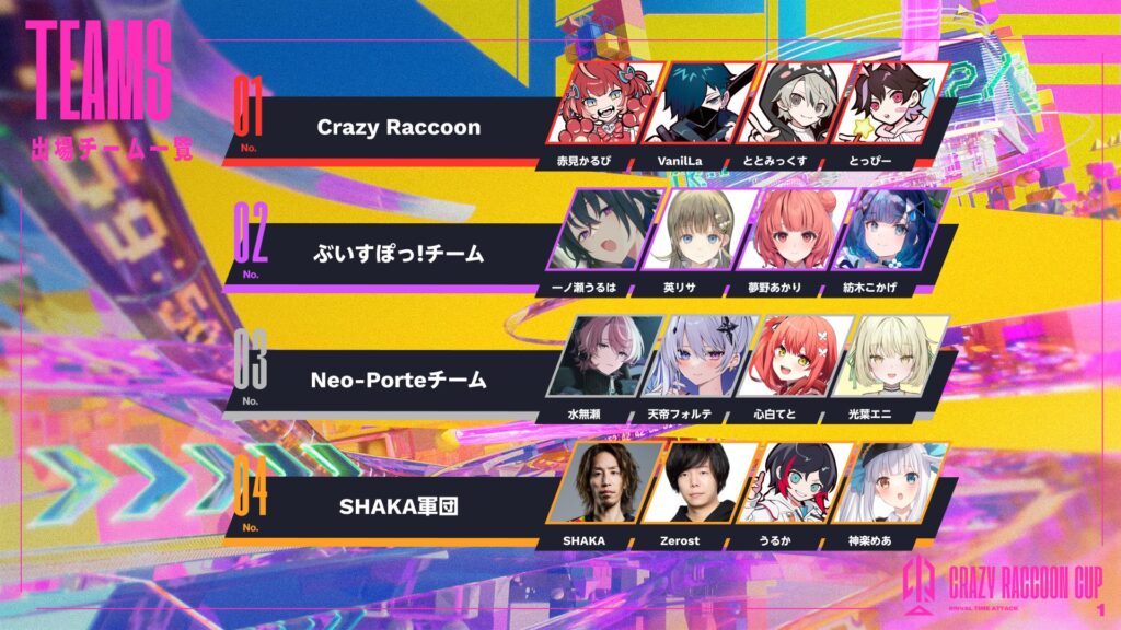 『第1回 Crazy Raccoon Cup Rival Time Attack』は、4つのゲームを使用し、チーム一丸となって最速クリアを目指すRTAイベントです。
